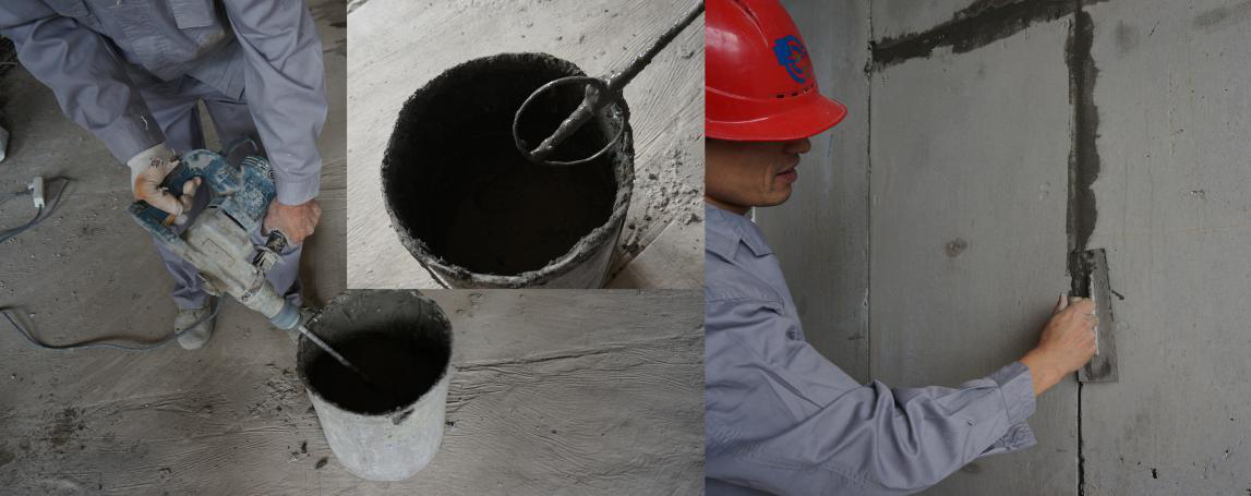 將校正好后的墻板板縫用粘合劑補(bǔ)滿、刮平。