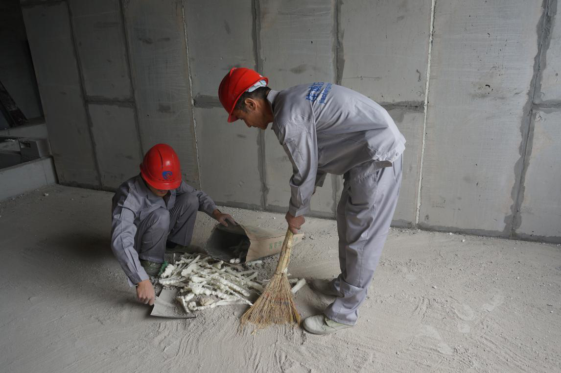 每班作業(yè)完后,清理施工中產(chǎn)生的建筑垃圾并放置到指定地點(diǎn)。